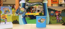 O espaço também contará com um balanço em formato de nave espacial do personagem da animação, piscina de bolinhas e um cenário com bicicletas, onde as crianças poderão simular que estão pedalando pela paisagem do Peixonauta. Com um fundo em chroma key, o totem com TV vai projetar a imagem dos pequenos enquanto fazer o percurso de bicicleta.