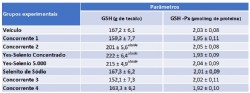 Na análise da atividade hepática da glutationa reduzida (GSH) e glutationa peroxidase (GPx) em ratas Wistar tratadas por 10 dias com diferentes compostos contendo selênio. Quanto maior a atividade das enzimas glutationa reduzida e glutationa peroxidase, foi possível registrar uma maior proteção dos animais.