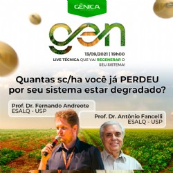 Para debater as oportunidades e melhorias geradas pela adoção de bioinsumos na produção agrícola nacional, a Gênica promove, no dia 13 de setembro, a partir das 19h, uma live técnica que apresentará dados e informações sobre as vantagens de integrar soluções que promovam a regeneração dos sistemas agrícolas, trazendo produtividade e rentabilidade ao produtor.