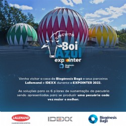 A Biogénesis Bagó vai ‘pintar de azul’ a Expointer 2022 com o lançamento do seu projeto ‘Boi Azul’. Um dos principais eventos do agronegócio brasileiro será realizado de 27 de agosto a 04 de setembro em Esteio (RS) e marca o lançamento oficial do programa da empresa para contribuir com a produção pecuária do futuro.